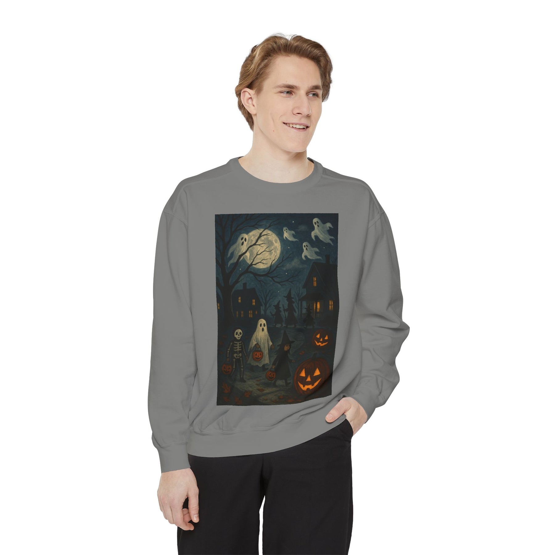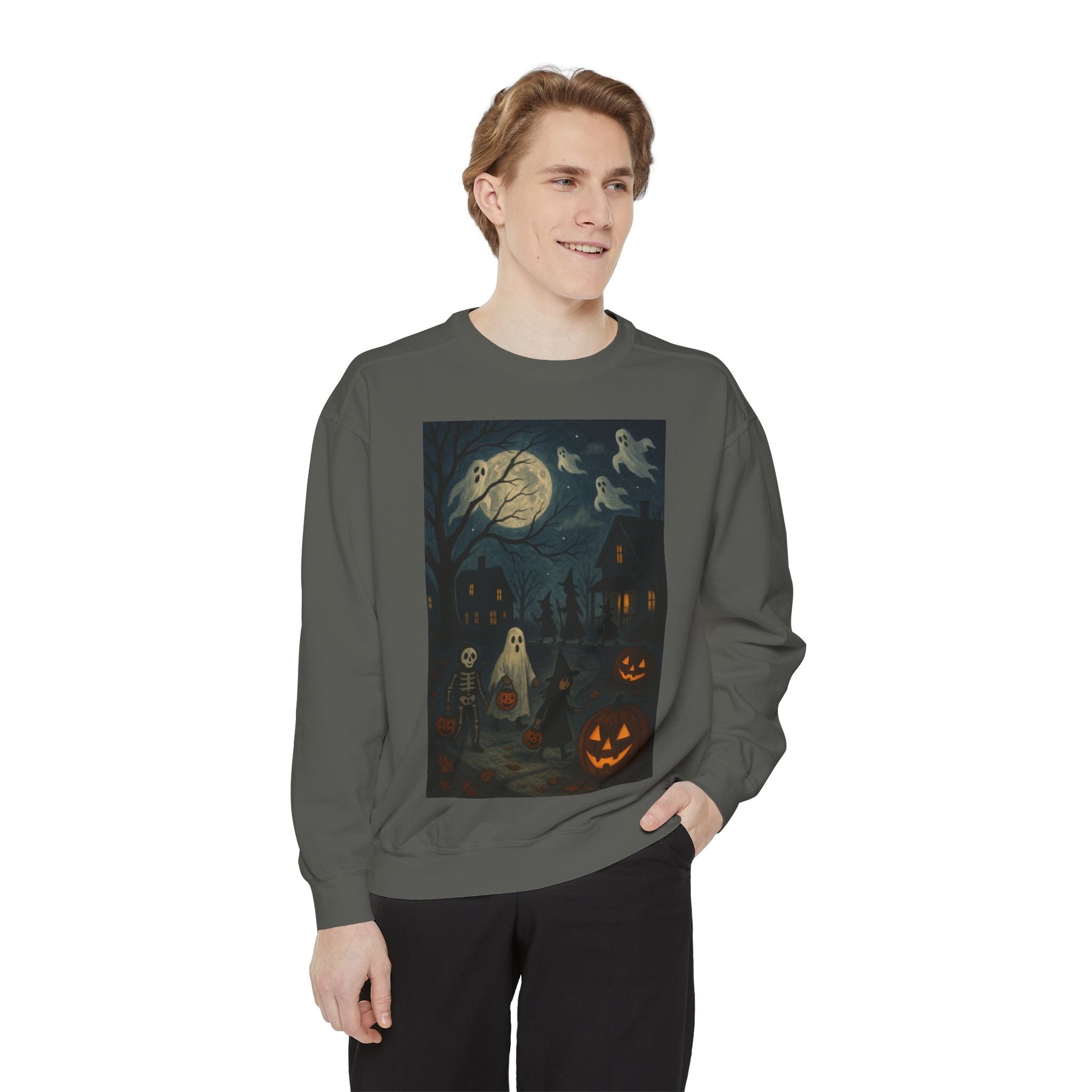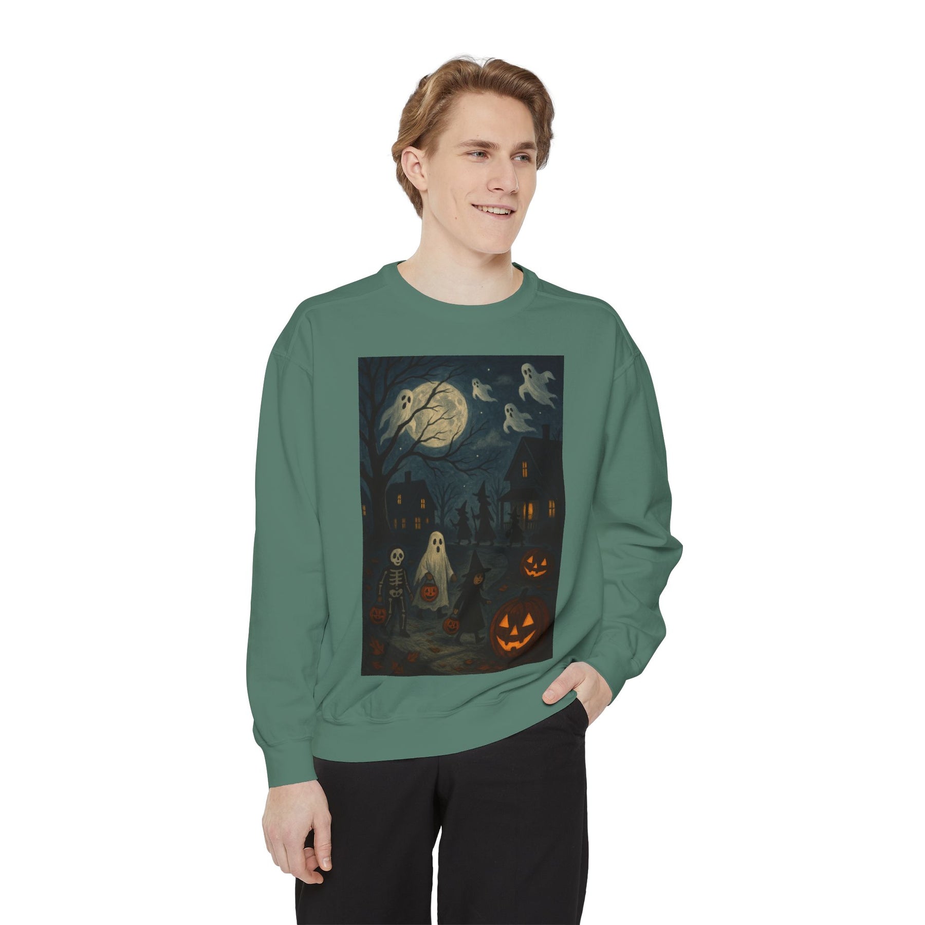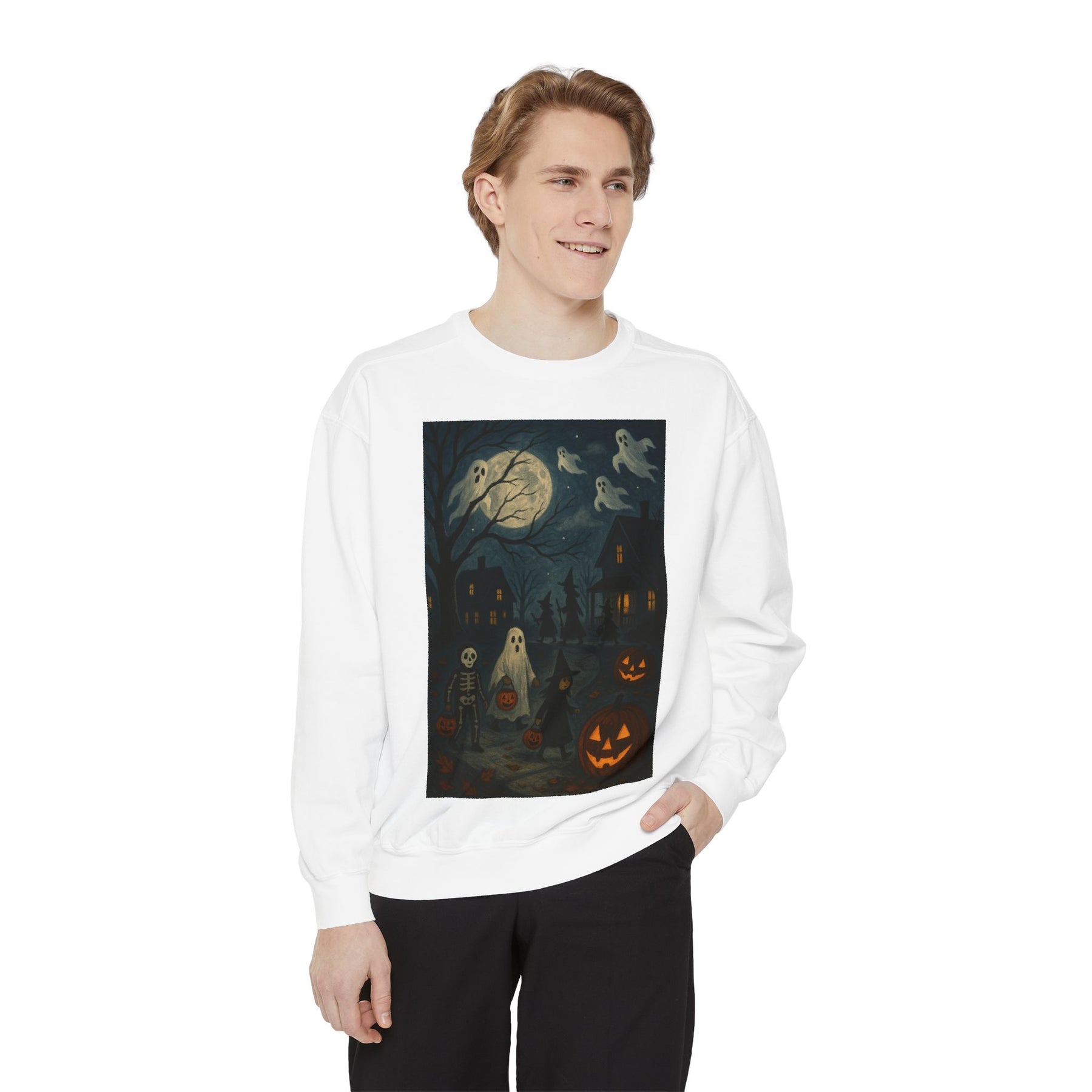 Cozy unisex Halloween Ghost sweatshirt perfect for the spooky season. This fall fashion staple is ideal for those looking for a ghostly touch to their wardrobe. Great as a Halloween gift for the holiday enthusiasts.